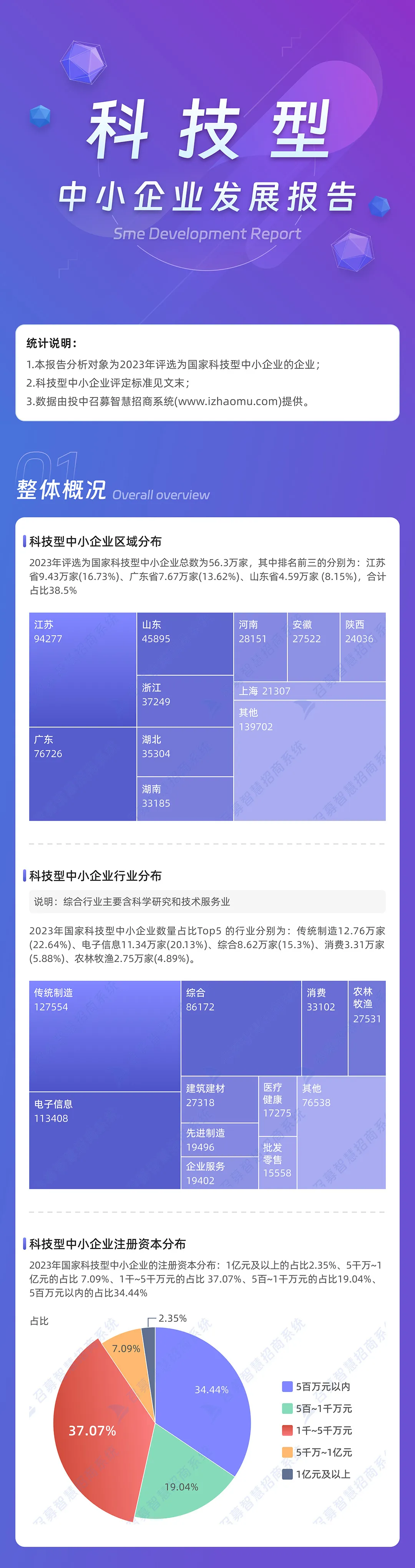 最近,投中信息通过旗下“召募智慧招商系统”梳理分析了2023年被评选为“国家科技型中小企业”的56.3万家企业,在2019年-2023年这五年间的迁徙动态,发布了《科技型中小企业发展报告》。