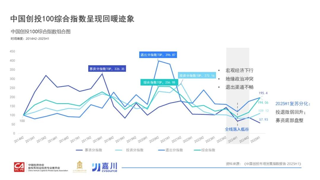 国资已成为中国创投市场的主导力量。国资创投50发展指数则每期选取50家国资背景创投机构,系统揭示其发展轨迹。2025年上半年,该指数出现高位回调,主要受募资与退出两端阶段性收紧的影响,这是当前全行业面临的系统性压力。